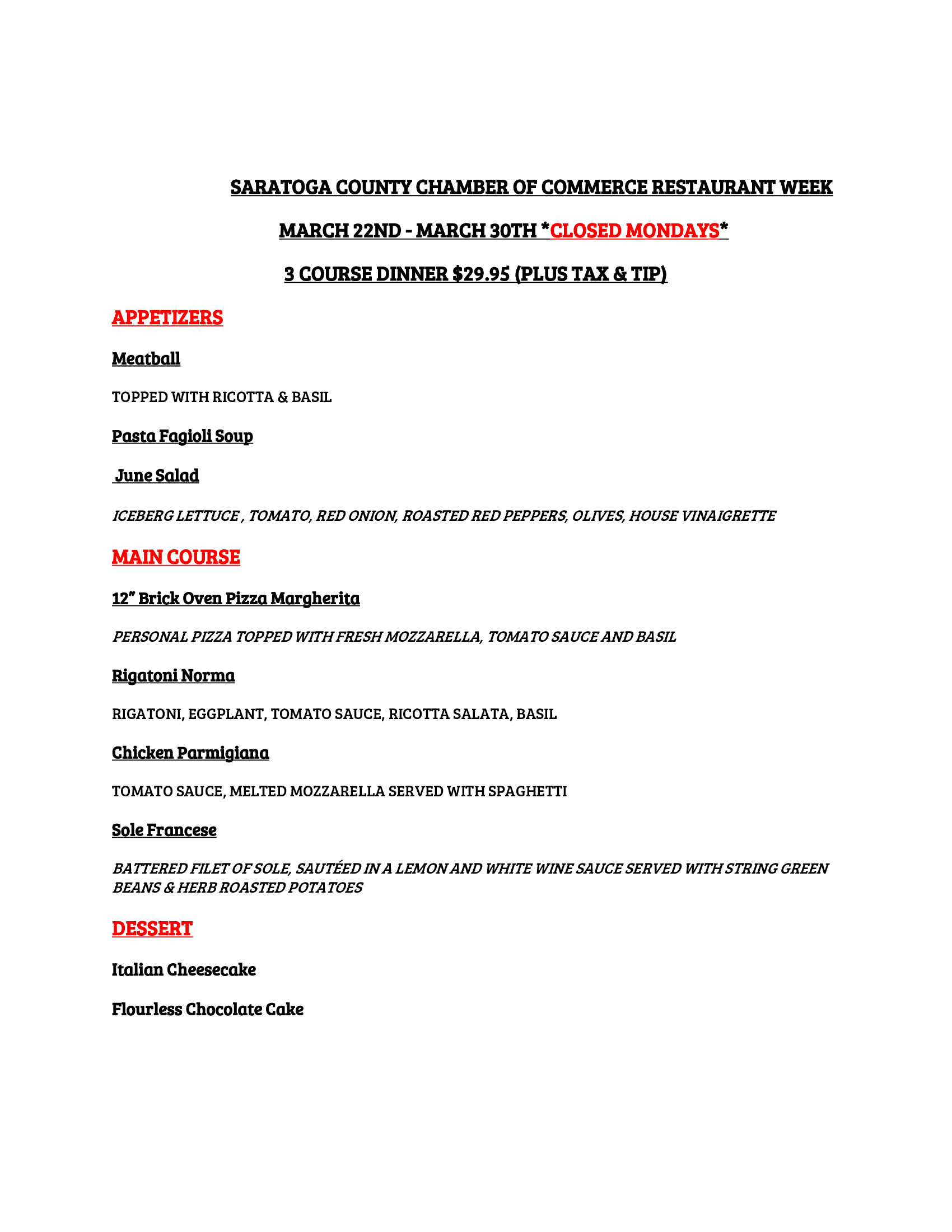 According to the Saratoga County Chamber of Commerce, restaurants will no longer be doing a fixed-price menu with limited options. Instead, restaurants will have the "flexibility to set their own prices and menus for breakfast, lunch, dinner, and/or takeout for customers to experience and enjoy."